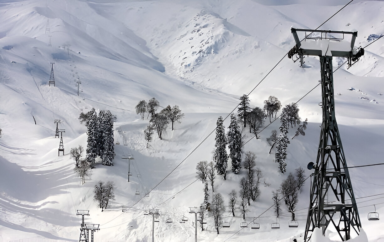 The snow-covered slopes of Gulmarg attract skiing enthusiasts